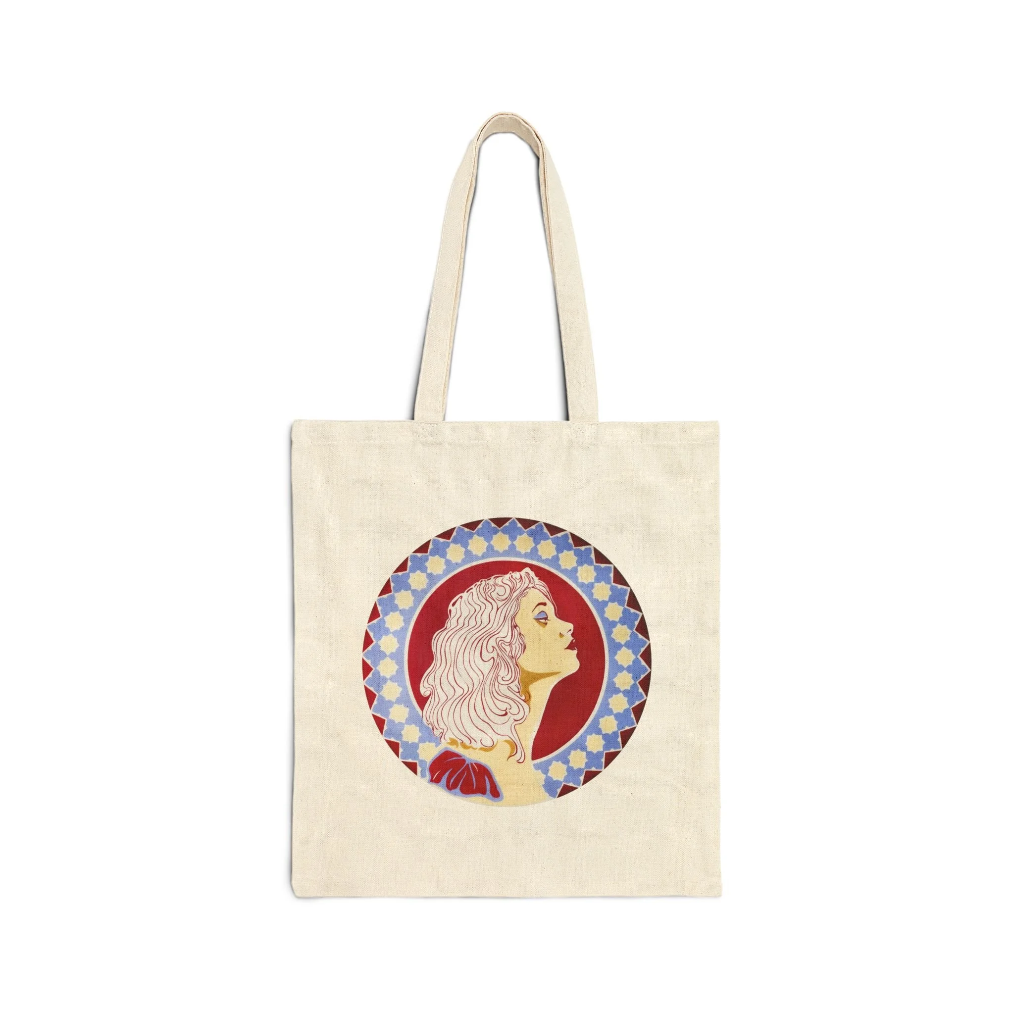 Art Nouveau Profile Woman Tote Bag | Decorative Portrait Canvas Tote